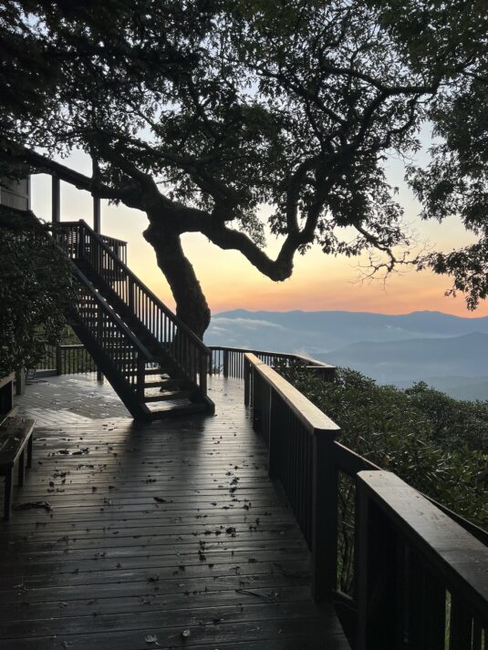 It’s because we have become part of a world that stands today as it has for thousands of years, is Tim’s theory, a slice of creation that’s largely left just as God intended. Our house is thoughtful but simple, built in 1978 and designed to meld into its surroundings with a deck that cantilevers over the steep mountain meadow from which it rises. Beyond are North Carolina’s beautiful Black Mountains—the entire range spreads before us—and as you stand there, the sun rises to the left and sets to the right, offering stunning bookends to mark each day.