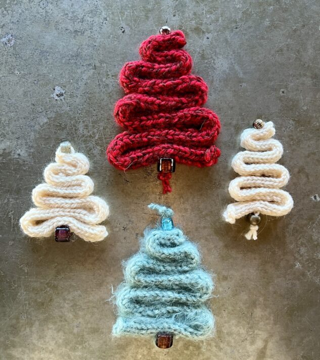 They’re quick and simple to knit up, and as to materials, I’ve used yarn and beads from my stash. I also had a set of double-pointed needles from my sock-knitting days, so all I needed I already had without a visit to the craft store. (Contrary to the tutorial below, I didn’t worry much about the type of yarn or the size of the needles; I promise you this methodology is very forgiving.) What you’ll do is use the knitting i-cord technique—which I hadn’t done in several years—and a quick YouTube refresher and I was good to go!
