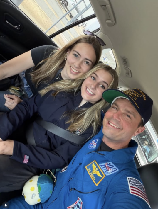 Commander Reid takes a commemorative photo with his girls. And it’s a back-seat selfie!!!