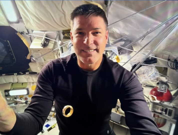 Launching on April 1st meant I got back in time to celebrate my 23rd wedding anniversary with @drcatherinehansen today! Grateful to be able to share this zero g photo of my wedding ring in person over dinner tonight… as well as some cuddle time on Earth.