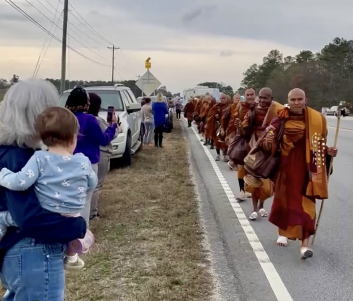 WHILE IT’S NOT ideal, it is fitting that my last post (Day 17 of 30 Days of Joy but who’s counting?) was filled with the wonder and awe of the Venerable Monks on their 2,300-mile Walk for Peace. I was then able to see the monks in person twice: first on the outskirts of Lexington, SC, when Tim and I took our sweet granddaughter, Posey, so she could experience the holy with us; and second, the following day when Tim and I and our dear friend, Teresa, joined thousands of friends, neighbors and strangers as, in solidarity, we walked behind the monks as they crossed the Gervais Street bridge and made their way to the South Carolina statehouse.